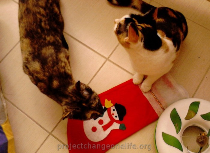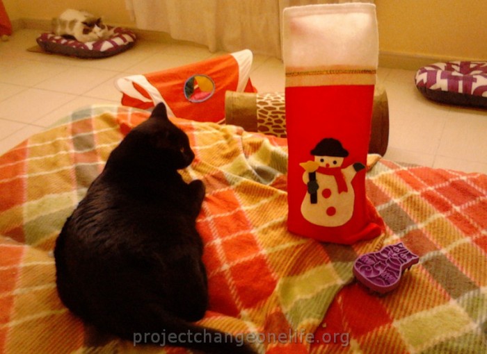 Here’s a photo slider of our rescues on Christmas Eve, waiting for Santa to fill their stockings! 😉