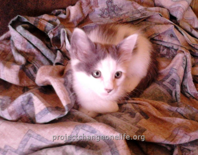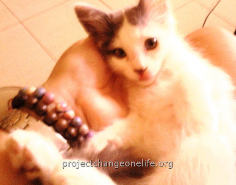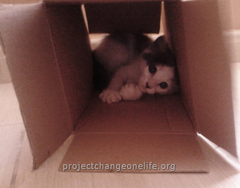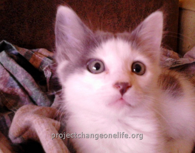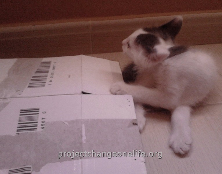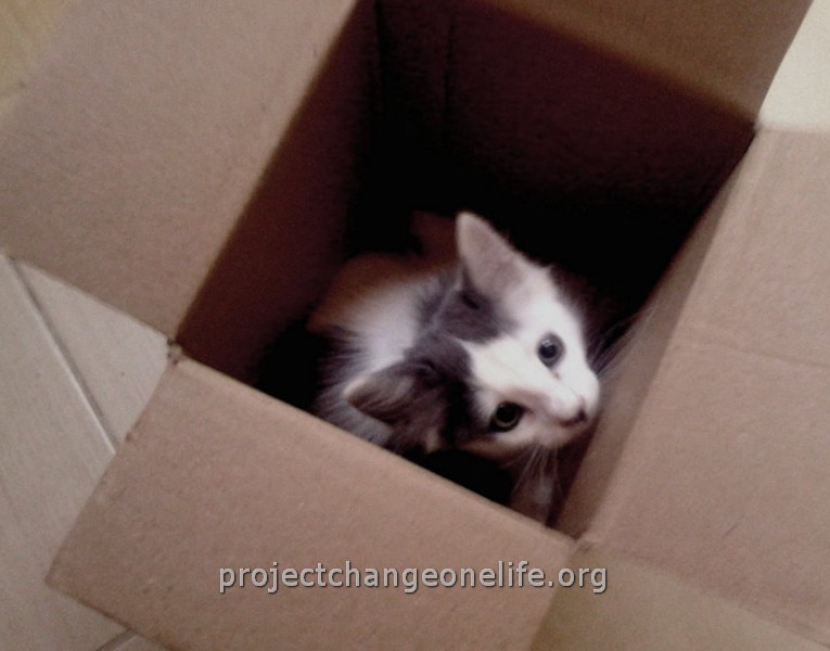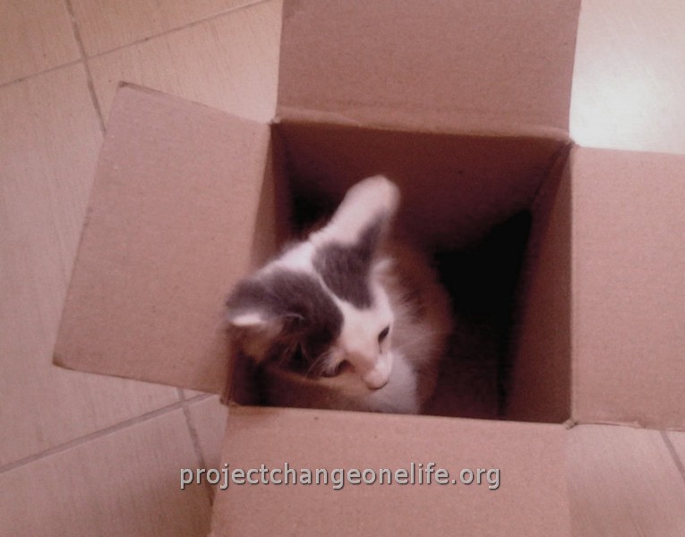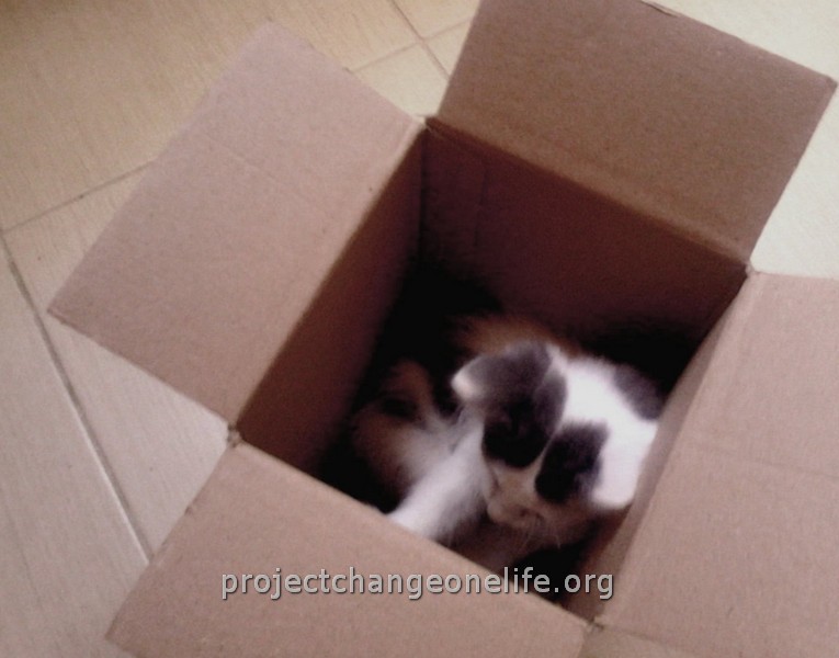 An orphaned tiny kitten in a small box partially wrapped with duct tape was left at our Santuary’s doorsteps. As we opened it up carefully there he was … the most adorable tiny furball ever looking so scared! His eyes were wide open and he was meowing so loud…
