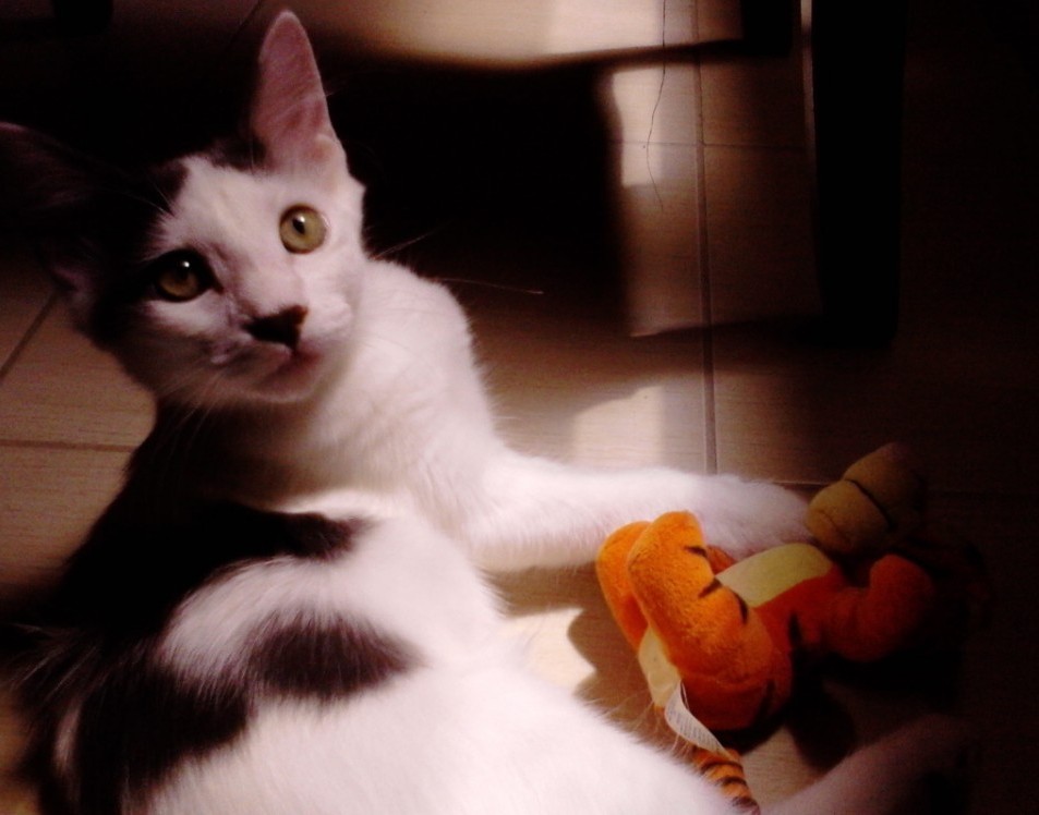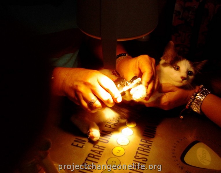 We took him in immediately. The kitten seemed to be in good health but skinny and full of fleas so we gave him a warm bath and something to eat.