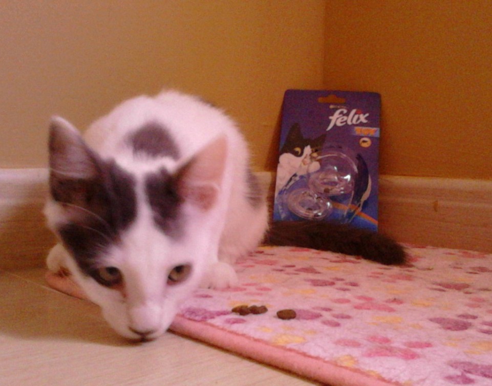 He was not too happy about the bath but once he was dry and warm again, we fed him and he started purring away!