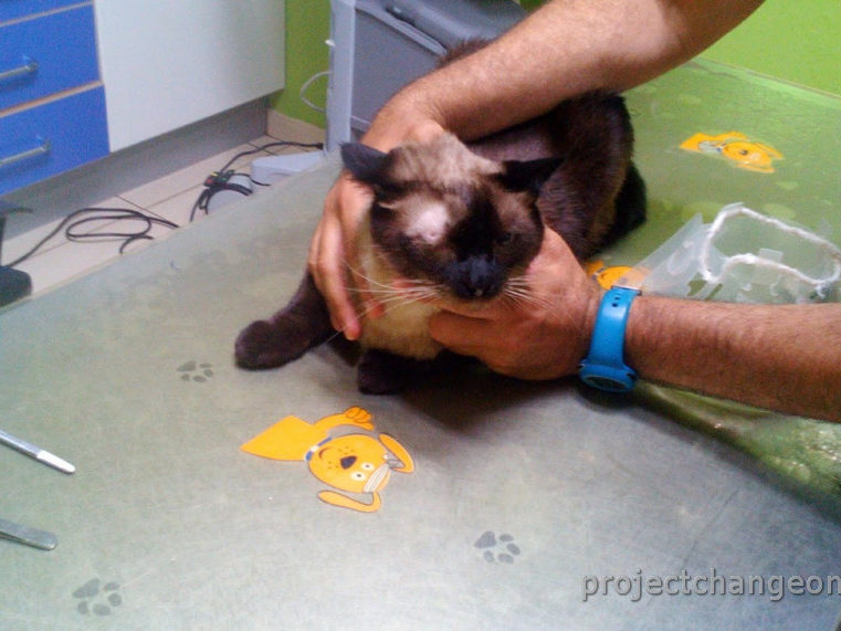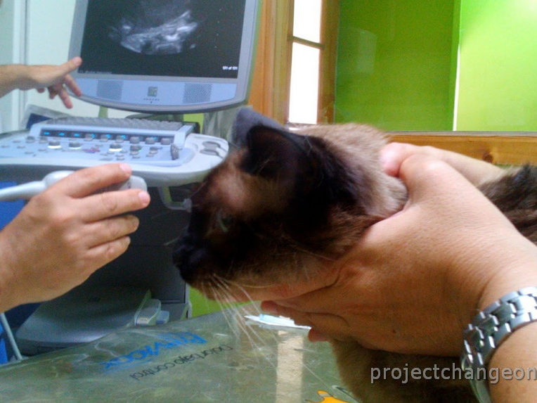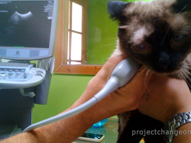 On the weekend before vet’s appointment, we found a big lump on Jasmine’s throat. We had her examined on Monday right away. Many tests had to be carried out in order to determine the cause: ecography, blood test and fine-needle aspiration biopsy were needed.