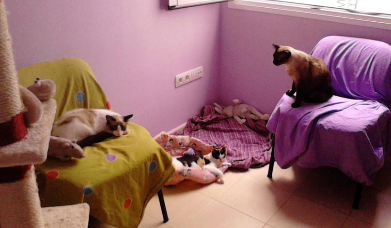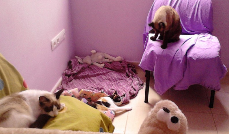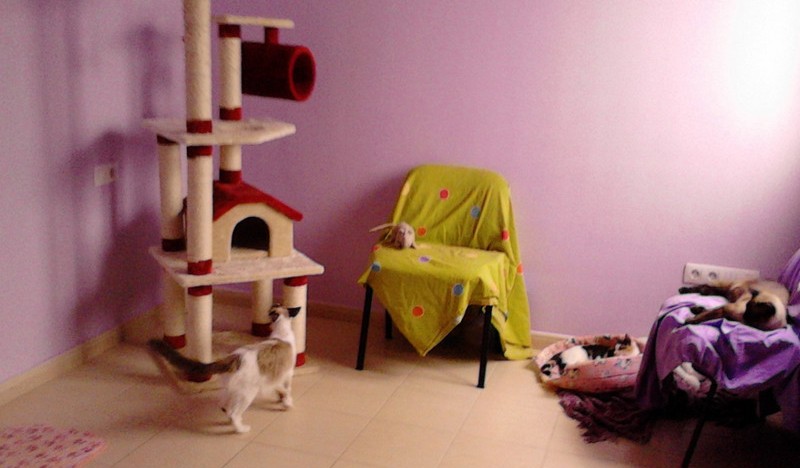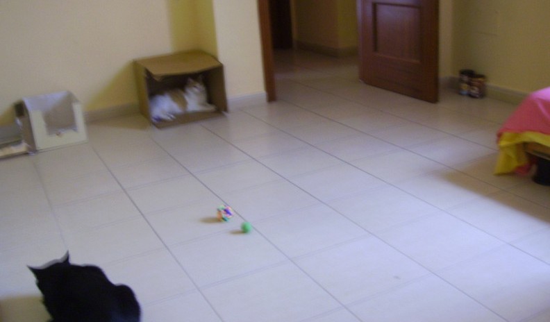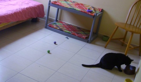 Yesterday, we finally moved our FeLV+ rescues to the new apartment (CatRoom3) which was interconnected with the old place (CatRoom2) last week. At the moment, the rescues that are healthy outnumber the ones with leukemia so they’re staying in the old place which is a bit larger. Both places have courtyards where they can sunbathe and enjoy some fresh air. At last, they’re all in one big place and future rescues will have a proper starting room where they can be nursed back to health. No need to go all the way up to our laundry room anymore!