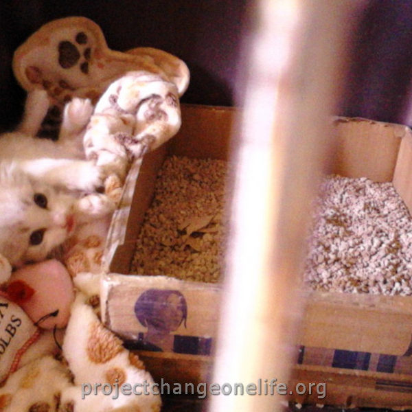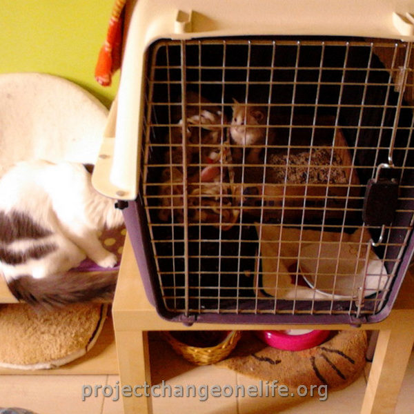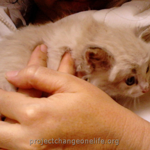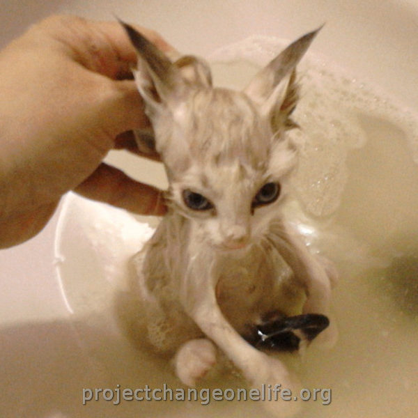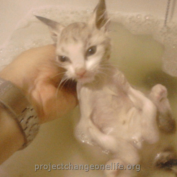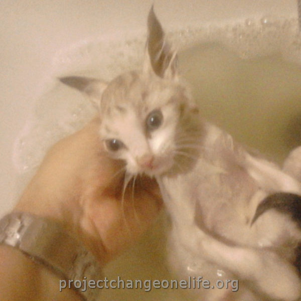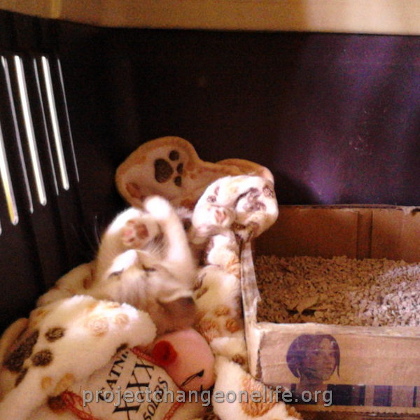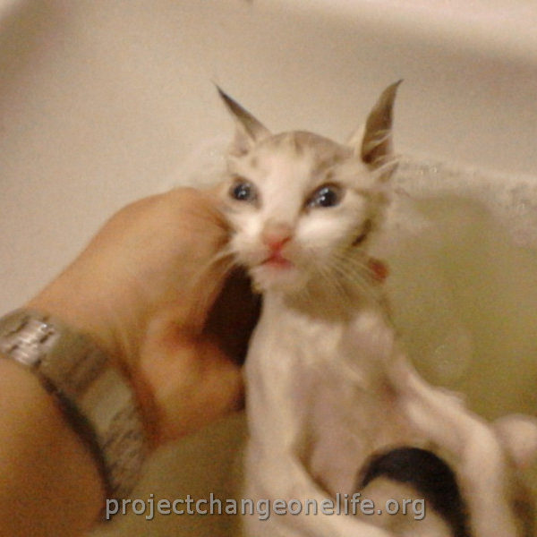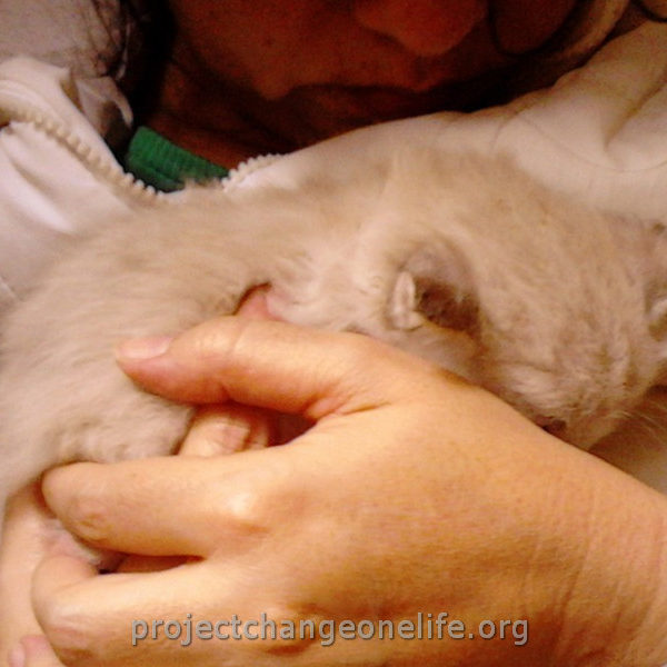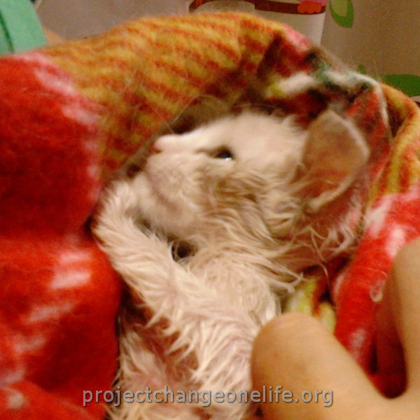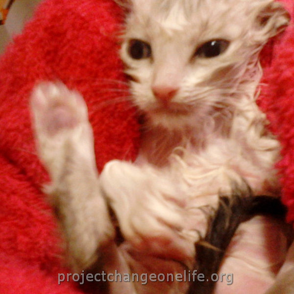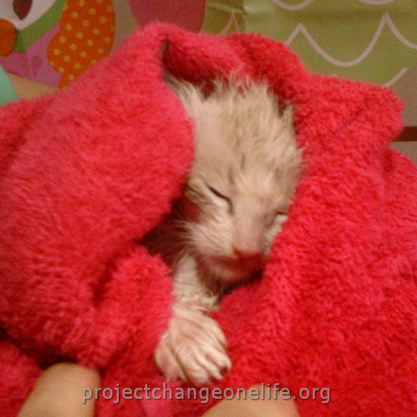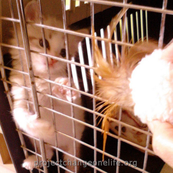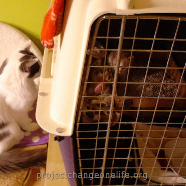 Mimi’s was taken to Cat Room 1 where she got a warm bath to get rid of the fleas and pigeon poop. She’s getting lots of TLC from all of us at the Sanctuary and she even found herself a new mommy, Kitty, who is taking really good care of her new baby!