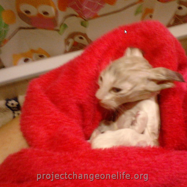 We took Mimi to Chloe’s room right away to reunite them but she rejected her baby. Anyway, even if she hadn’t they could no longer be together, Chloe’s mastitis was highly risky for Mimi so we had to find her an adoptive mommy.