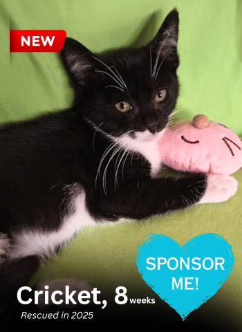 Cricket, 8 weeks – Sick feral kitten. Diagnosed with a severe case of FVR. Found in distress in his colony. Rescued in November 2025.
